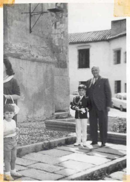 Mi Primera Comunión, con mi abuelo Antonio, en la Iglesia de Santa Marina. Recuerdo que la hice yo solo, no había mas nenes haciendo la comunión, no se porqué, pero si que recuerdo que estaba todo atacado de los nervios, y es que era el protagonista único. Llevaba el típico traje de almirante tan común entre los chavalines de aquellos años, era lo mas, hacer la comunión de almirante, jeje.